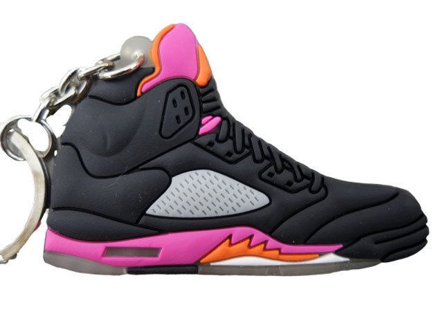 Flat Silicon Sneaker Keychain AJ 5 - Black/Pink