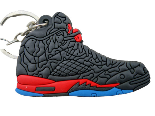 Flat Silicon Sneaker Keychain AJ 5 - Black prints / Red