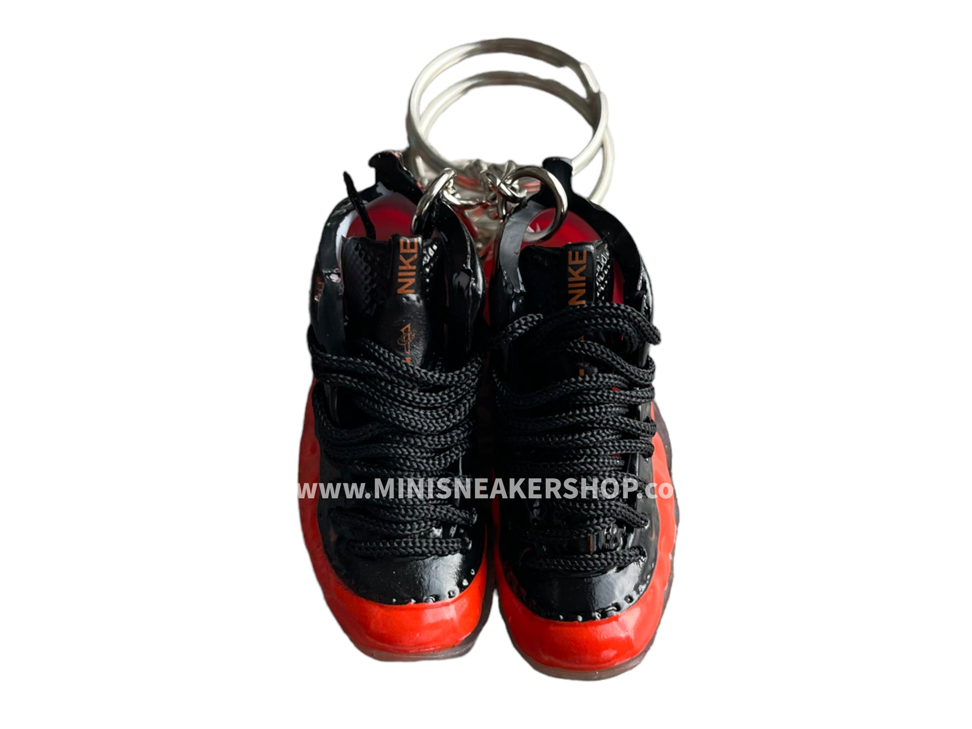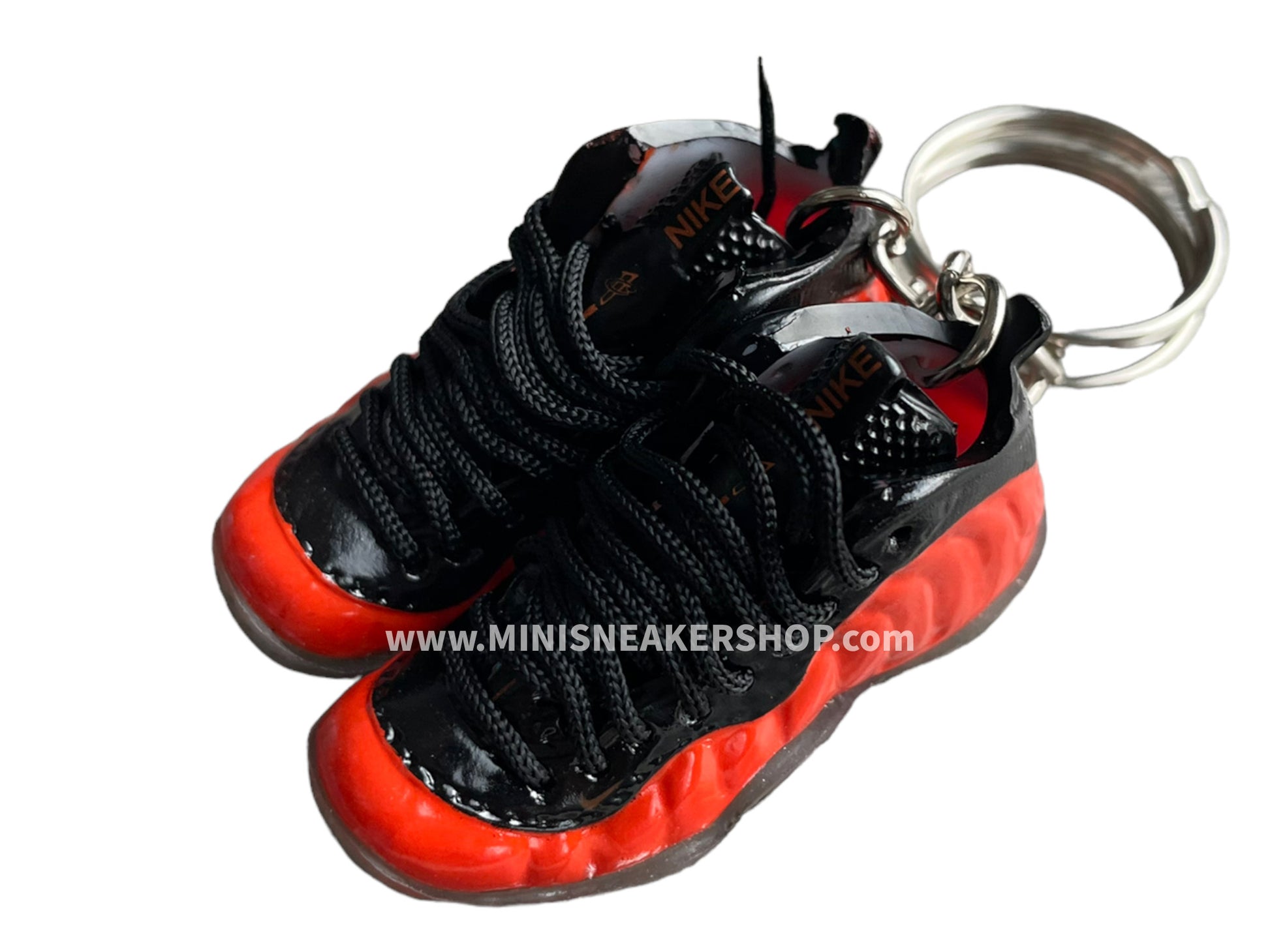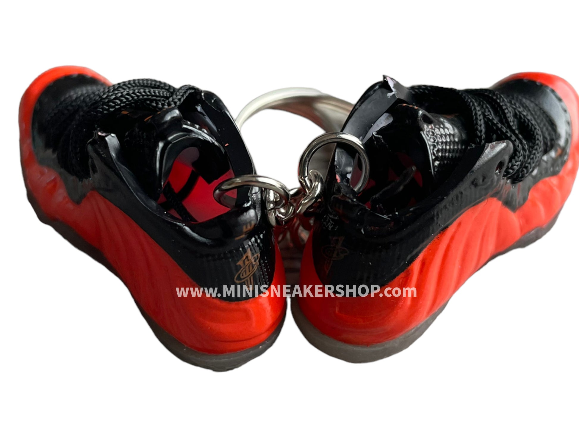 This is a pair of Mini sneaker keychain 3D Foamposite - Fire red