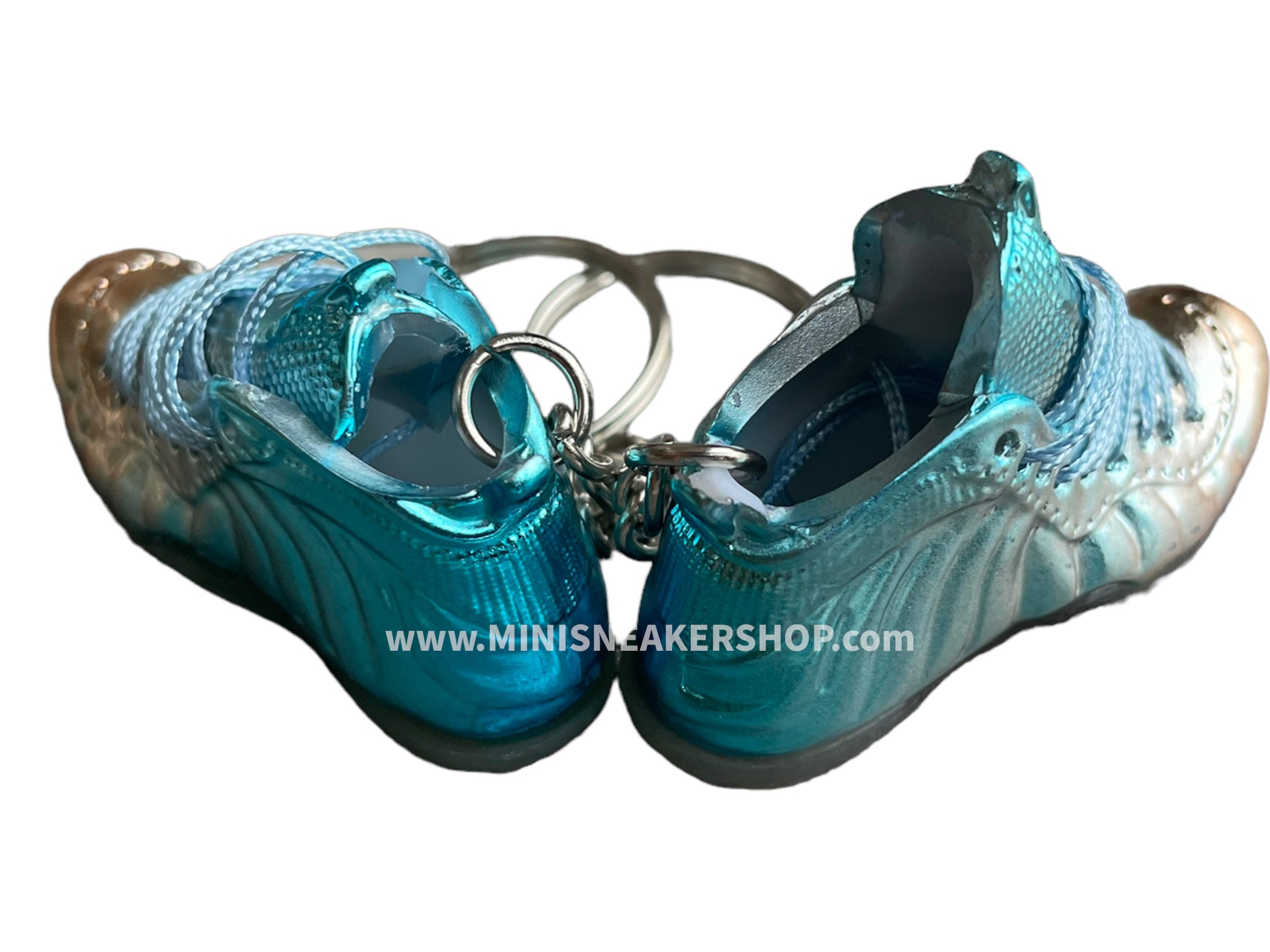 This is a pair of Mini sneaker keychain 3D Foamposite - Metallic Blue
