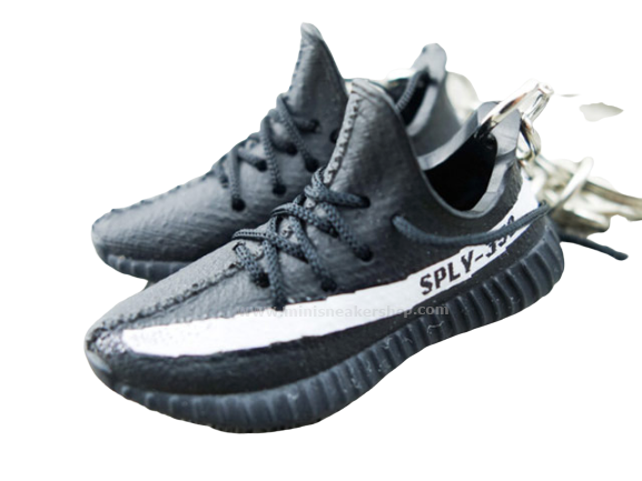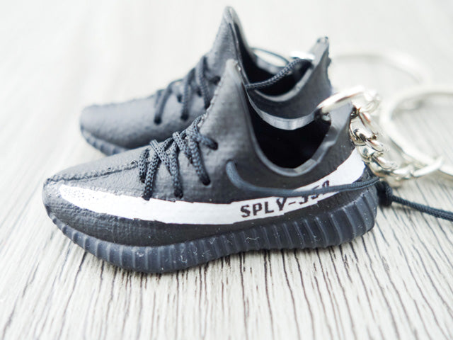 This is a pair of mini 3D sneaker keychains Adidas Yeezy Boost 350 V.2 black and white