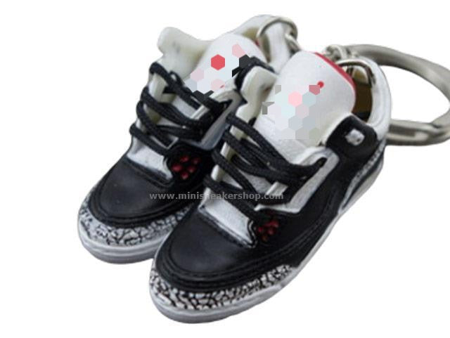 This is a pair of mini 3D sneaker keychains AJ3 Black Cement.